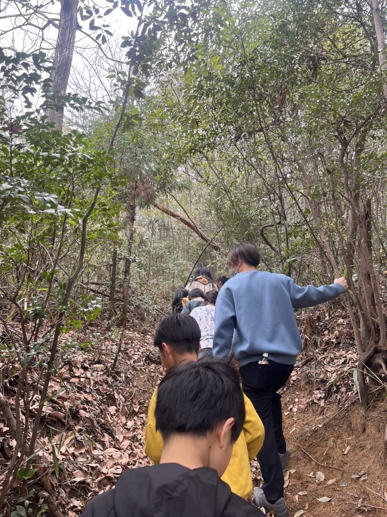 「春の植物探しと探した植物でつくるクイズ」ワークショップで、まずは近くの山に